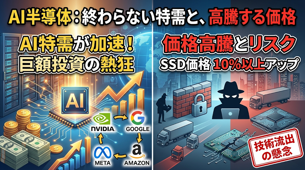 今日の半導体ニュースは、終わりの見えないAI特需が生み出す巨額投資の熱狂と、その裏で進行するサプライチェーンの構造的変化が交錯する状況をお伝えします。NvidiaやGoogleによる巨額のAIスタートアップ投資が相次ぎ、メタがアマゾンの独自CPUを導入するなど、AIインフラ確保に向けた企業の垣根を越えた合従連衡が加速しています。さらに、韓国メモリ大手による次世代DRAMの熾烈な開発競争が続く一方、供給逼迫によるSSD価格の10パーセント以上の引き上げや、中国への技術流出事件など、コスト高騰や経済安全保障上のリスクも同時に顕在化しています。