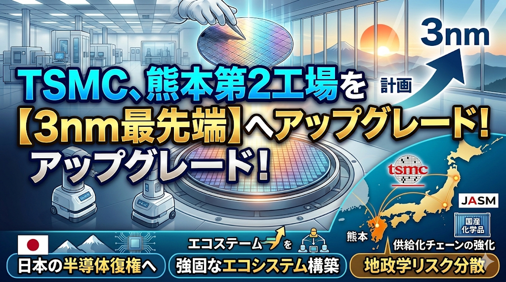 - TSMCが熊本の日本工場を最先端の3nmプロセスへアップグレードし、日本での製造基盤を強化