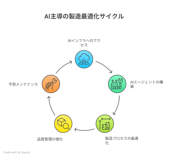 計算インフラの民主化:OpenAIの大規模インフラ投資は、中小製造業者でもクラウド経由で高度なAI計算リソースにアクセスできる環境を整備します。これにより、従来は大企業のみが可能だった複雑な製造最適化、予測メンテナンス、品質管理AIの導入が現実的になります。
